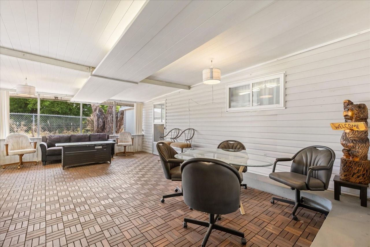 Located in the peaceful lake area of Tavares, Florida, this charming home offers the perfect balance of comfort and privacy. This is an owned-land home with no leased land, situated in a quiet 55+ community at the back of the neighborhood. It's a great potential for seasonal living as a winter retreat, investment, or full-time residence. This triple wide 2-bedroom, 1 full bath, and 2 half-bath home provides 1,014 square feet of living space on a 6,300-square-foot lot. Each bedroom has its own toilet room, plus another half bathroom is located off the living room.The open-concept kitchen, living, and dining areas create a seamless flow, while a unique split layout features a large covered and screened patio at the center, offering peaceful outdoor living with no rear neighbors and serene greenery views. The home has laminate flooring throughout, stainless steel appliances, stone countertops, two refrigerators, and new upper kitchen cabinets added in 2022. The plumbing has been updated, and the HVAC system has been recently serviced. Roof work has been completed, and a foundation repair in 2025 provides added peace of mind. Additional features include a long driveway, a spacious covered front entry, an outdoor mud/utility area, and a laundry room with a sink, along with an included washer and dryer. The property also offers extra storage, a workshop area, or a golf cart garage. This well-maintained, move-in-ready home may be sold with negotiable furniture and a golf cart. Situated in the Imperial Mobile Terrace West community with a low $25 monthly HOA, residents enjoy an array of amenities, including an indoor pool and hot tub, a clubhouse, a library, table tennis, shuffleboard tables and courts, and a waterfront park with a fish-cleaning station and canal access via a boat ramp. For an additional fee, you can use boat slips. An active lifestyle is encouraged with social events such as dance classes and game nights. Conveniently located near dining, shopping, and medical facilities, the home is just minutes from downtown Tavares, Mount Dora, and local amenities like Publix and Lake Square Mall. This inviting home offers a rare opportunity to experience both comfort and community in a desirable location. Schedule your showing today and see all that this home has to offer.