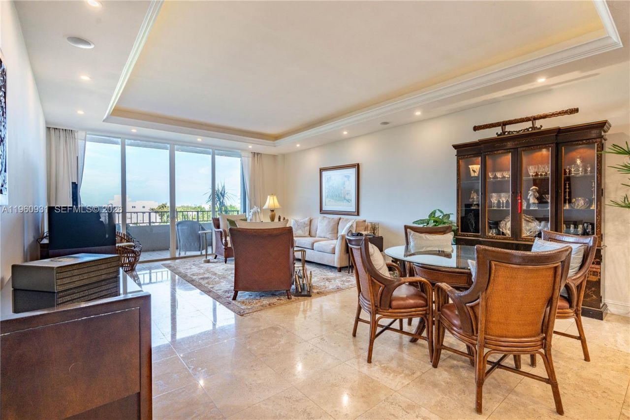 Impeccable renovated in Emerald Bay at Key Colony, this spacious 2-bedroom, 2-bath residence offers an inviting layout and scenic views that capture the essence of Key Biscayne living. The private balcony overlooks lush palm trees with the Miami skyline beyond, along with views of the bay, colorful sunsets, and a glimpse of the ocean.Bright living and dining areas provide comfortable space for everyday living and entertaining. The residence features a remodeled kitchen with updated finishes, renovated bathrooms, marble and wood flooring, and custom lighting fixtures throughout.The generous primary suite offers space for a seating area and includes an additional closet and vanity. The primary bathroom features a custom wood wall unit, walk-in closet, and dual sinks with a marble countertop. The guest bedroom also includes a custom-made walk-in closet.Key Colony amenities include direct beach access with chairs and umbrellas, three pools including an oceanfront pool with casual bar and restaurant, tennis courts, playgrounds, a gourmet market, and 24-hour security. Located just across the Rickenbacker Causeway from Miami. $40K+ special assessment paid.