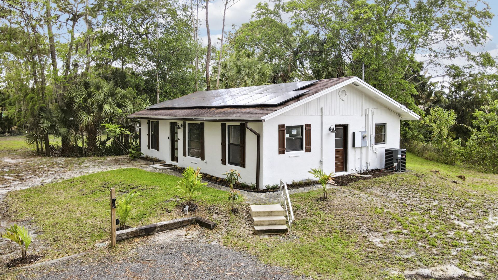 Rarely Available and Highly Sought After Unfurnished 1 story 3/2 SPLIT FLOOR PLAN on fenced private treed approx 1 ac lot. NO HOA. Bring your grill, chicken coop, outdoor furniture. LIVE THE FLORIDA LIFESTYLE. Sit by the FirePit or Dine outside on the Back Deck Picnic Table or on the Patio. Top of the line appliances, granite countertops. Enter the Private Front Gate to your Oasis. Amazing Outdoor Shower! Fenced Turf Pen out front shaded by the trees. Store your Boat on the Property. RV Setup incl Electric and Water Hookup. Or elec hookup could be used as Charging Station. Minutes to Publix, Banks, Hospitals, all amenities. Blocks to Westlake. Tankless WH/SOLAR PANELS cut your elec bills in half! Monthly Rental amount includes Water and Yard.
