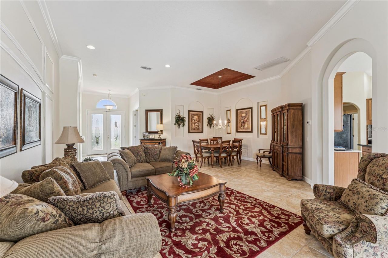 Don't miss this stunning Mediterranean estate home in the highly sought-after gated community of Hidden Cove. This spacious residence features 4 bedrooms, including a dedicated office, 3.5 bathrooms, and an upstairs bonus room. The open floor plan showcases a beautifully finished open-concept kitchen, formal living and dining rooms, and a welcoming family room designed for both everyday living and entertaining.The owner's suite offers a private retreat with a sitting area overlooking the pool and lanai, an expansive walk-in closet with custom shelving and separate dressing area, and a luxurious en-suite bath. Upstairs the oversized bonus room is perfect for movie nights and game days, complete with a wet bar, powder bath, and dedicated AC unit.Step outside to enjoy the screened-in swimming pool, large covered lanai with built-in grill, and generously sized backyard. Additional highlights include tile flooring in main living areas, soaring 15-foot tray ceilings, crown molding, plantation shutters, custom draperies, built-ins and decorative niches, a paver driveway, tile roof, and 3 car garage.Conveniently located to shopping, restaurants, and I-4.