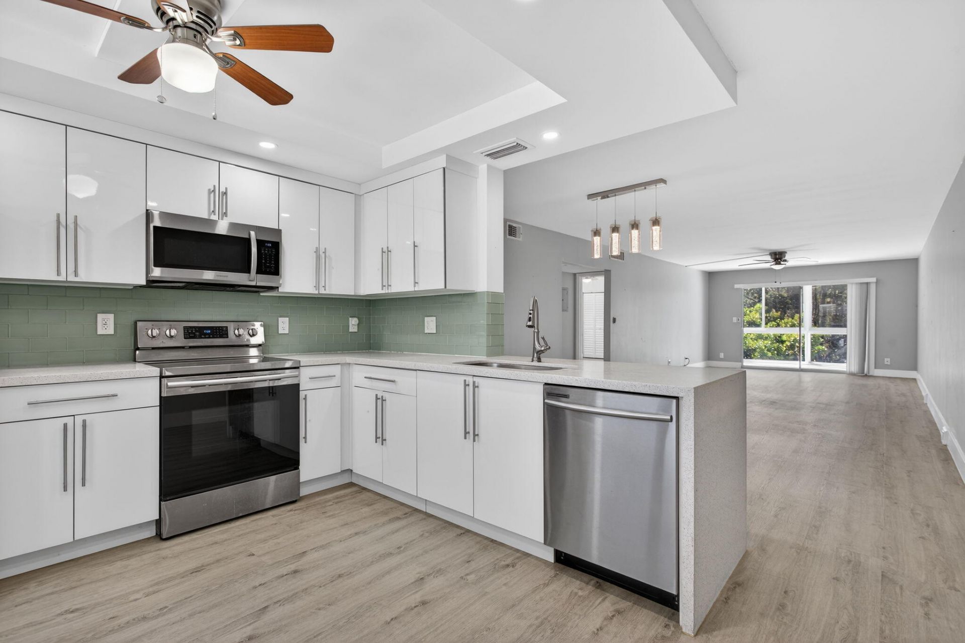 Beautifully renovated 2-bedroom, 2-bath corner unit in desirable Lucaya. This spacious home features a brand-new kitchen with upgraded cabinetry, quartz countertops, and stainless steel appliances. Waterproof laminate flooring flows throughout, adding both style and durability. Enjoy two oversized primary bedrooms, each with updated bathrooms and sleek glass shower enclosures. The corner location provides extra windows, filling the home with natural light. The enclosed terrace with impact glass offers additional living space-perfect for relaxing or entertaining. Thoughtfully designed with modern lighting and ceiling fans throughout for added comfort, this home is move-in ready and truly a must-see! ASSOC REQUIRES 15% DOWN & 1 OCCUP 55+ VACANT/CLICK ON SHOWING ASSIST