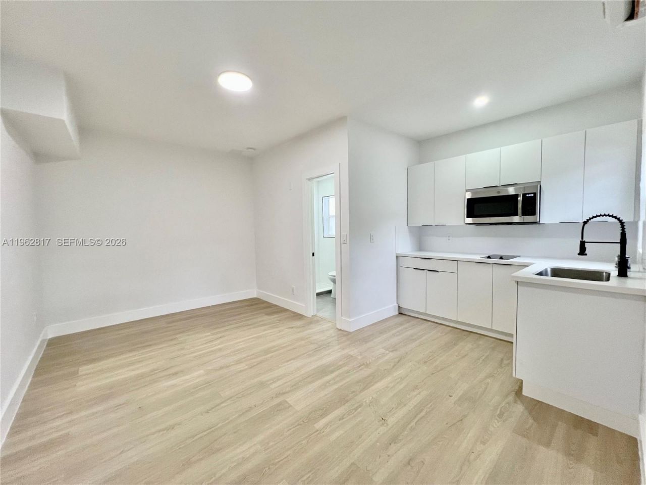 Newly remodeled efficiency with private entrance. Features one bathroom and a small kitchenette. Gated entrance for added privacy and security. On-site parking available. Modern, clean finishes throughout.