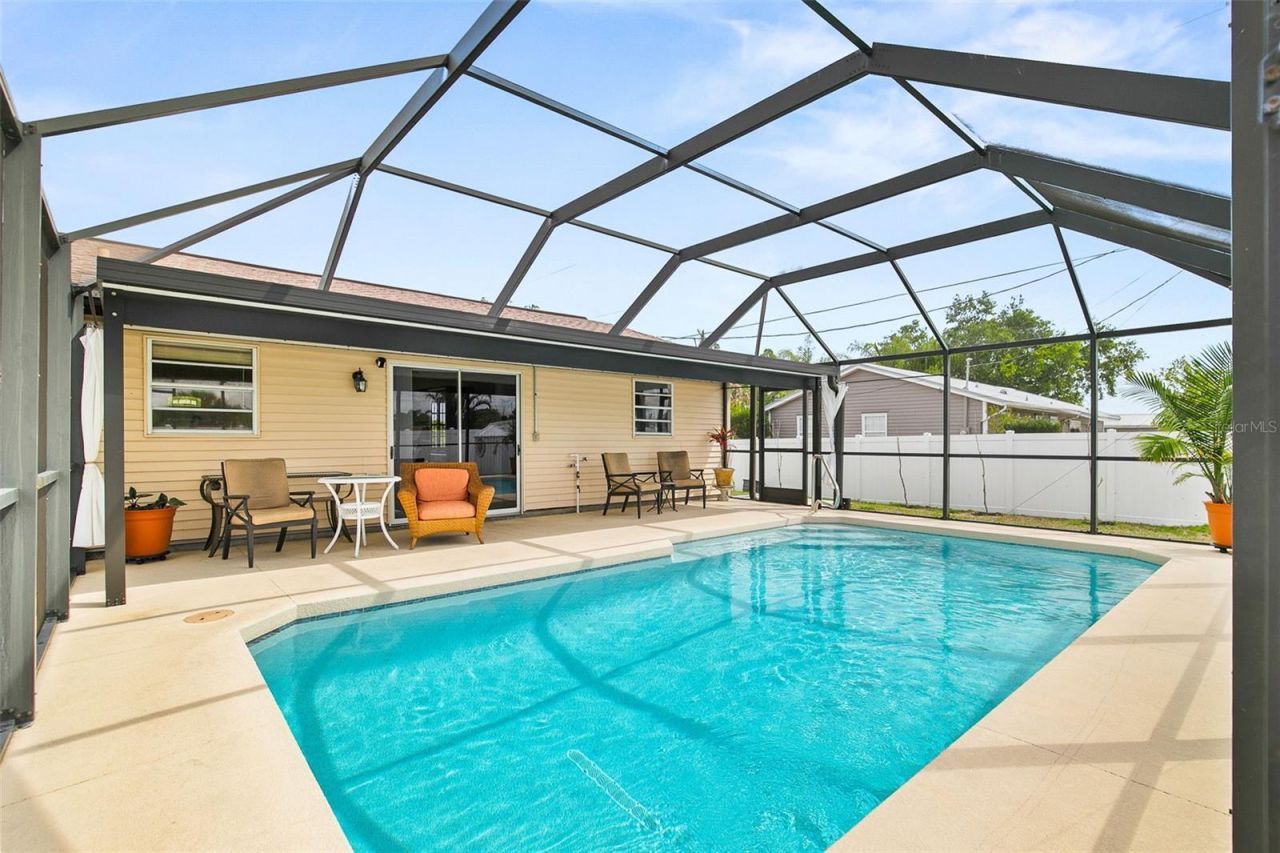 Move-in ready pool home on an oversized corner lot in Harbour Heights. This property is HIGH AND DRY, NO FLOOD INSURANCE NEEDED! Step inside to a bright, open layout featuring high-quality luxury vinyl plank flooring throughout. Sliding glass door leads out to the pool and lanai, creating the perfect space for lounging and enjoying the peaceful backyard. The updated kitchen showcases granite countertops, stainless steel appliances, and a modern touchless faucet, creating a functional and inviting space for everyday living and entertaining. The open living area flows seamlessly, offering comfort and versatility. Step outside to your private backyard retreat with a beautiful 2017 heated pool, enclosed by a 2018 pool cage, perfect for year-round enjoyment. The fully fenced yard with vinyl privacy fencing provides space for pets, gardening, or relaxing outdoors. Major updates include a 2022 roof and 2016 replumb. Additional features include security lighting and a full Ring camera system surrounding the home. Located on a quiet private road just minutes from Harbour Heights Park, enjoy easy access to kayaking, canoeing, pickleball, volleyball, and more. Conveniently located near I-75, this home offers both accessibility and a relaxed Florida lifestyle. Make this house YOUR HOME!