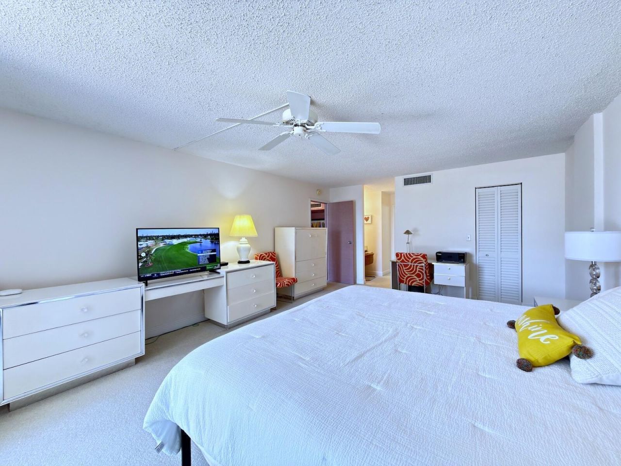 Enjoy this spacious 1-bedroom, 2-bath apartment on the island, just steps from both the pool and the beach. Floor-to-ceiling sliding glass doors in every room open onto a large balcony, perfect for basking in the sun, enjoying tropical breezes, and relaxing to the soothing sound of fountains. The Barclay offers a true resort-like lifestyle with direct beach access and an array of amenities, including a fully equipped gym, tennis courts, a heated pool, BBQ facilities, saunas, a business center, game rooms, a lounge, 24/7 doorman, covered parking, and convenient drive through car-wash. Water, cable, and internet are all included in the rent.