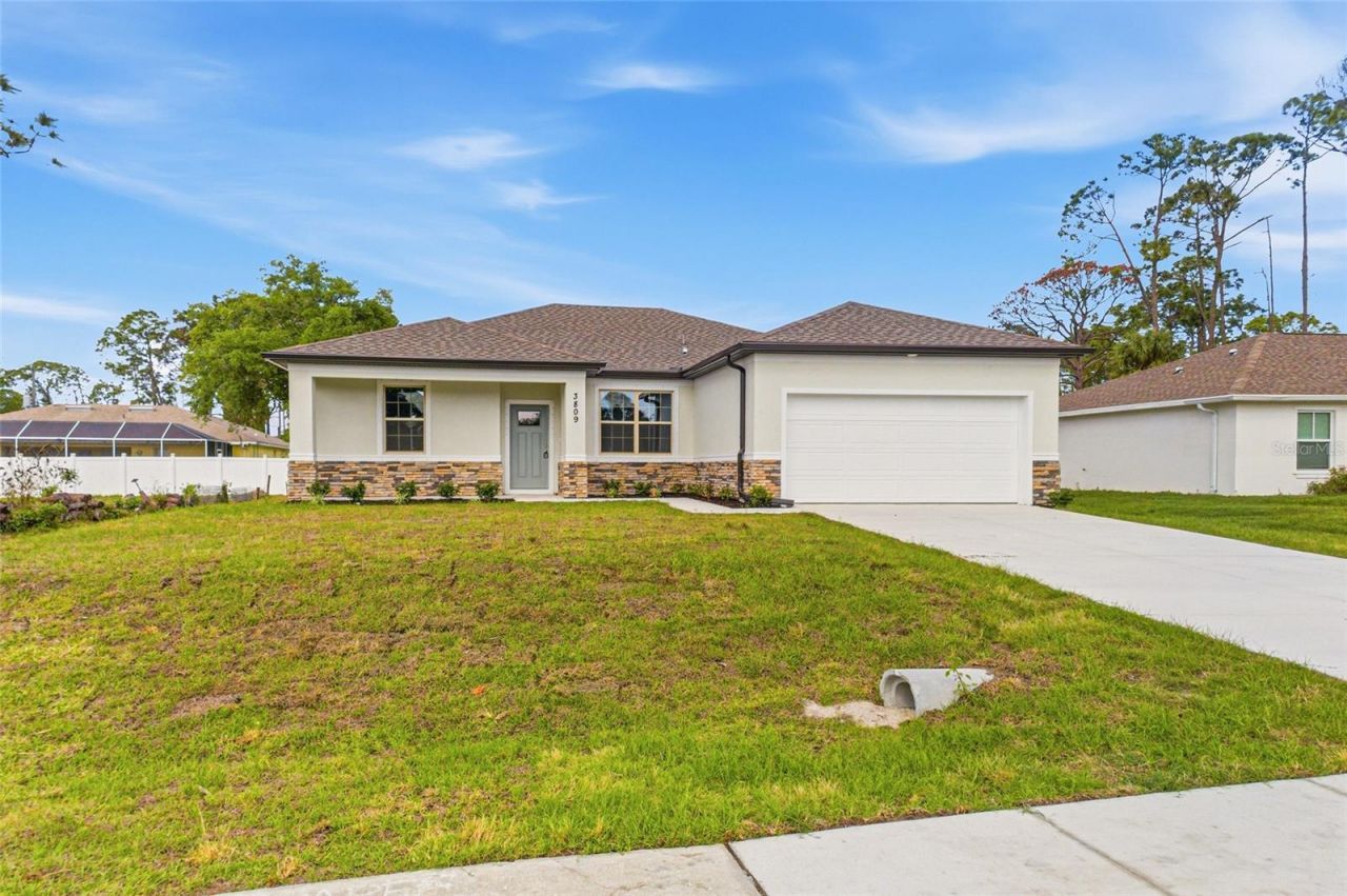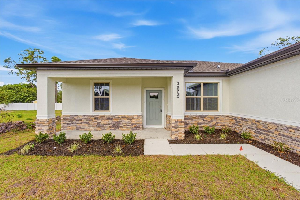 Great price with luxury features and ready now! A newly constructed home with city water and septic system in North Port, with no HOA fees! Great location for quick access to schools, the city center, medical conveniences, parks and the highway. North Salford is not in a high traffic area and only has side streets. This affordable new home is ready for you and is just what you've been looking for! This home has 9'4 tall ceilings, a nice and open layout with a versatile floor plan. The house features 4 bedrooms, 2 full bathrooms, dining room, a living room, an open kitchen and a 2-car garage with 1810 square feet of living space. The living space is well-utilized with high ceilings and many windows providing natural light. The interior features will provide you with the quality and luxury you were looking for in your new home. This home has a split floor plan with the primary suite on one side of the home and the guest bedrooms on the other. The primary bedroom has a tray ceiling and large windows that let in natural light. You'll also enjoy a resort-style bathroom with a spacious walk-in shower with floor-to-ceiling tiled walls and a glass enclosure. It also features a linen closet, double vanity and a large walk-in closet. The living room features large windows and several LED fixtures providing plenty of light with access to the covered lanai. The living room is open to the kitchen, where you'll find a huge center island with extra seating for casual dining and plenty of cabinets. The kitchen features stainless steel appliances, Shaker-style cabinets with crown molding, decorative hardware, subway tile backsplash and granite countertops. The dining room is located at the front of the house, with large windows allowing for plenty of natural light. The home includes luxury vinyl plank flooring in the main living areas and bathrooms for durability and comfort. You'll love these floors! They are easy to maintain and offer a modern design, perfect for new homes. Other features include the same beautiful Shaker-style cabinets with hardware and granite countertops in the bathrooms, 5-inch baseboards, a garage door opener, gutters on the exterior, R38 insulation, a 16 SEER HVAC and much more. Visit our model center and compare the features and quality with other homes and you'll see the difference. We make buying easy for you!