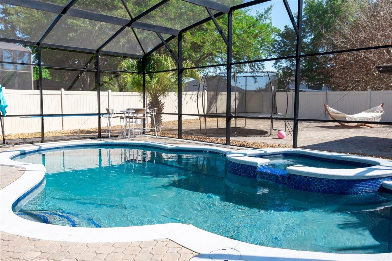 This beautifully remodeled home is truly move-in ready and offers the perfect blend of comfort, style, and functionality. The roof was replaced just 3 years ago, and the A/C system has been well maintained for peace of mind.Enjoy your private outdoor oasis featuring a resurfaced pool and a heated jacuzzi-perfect for relaxing or entertaining year-round. The home boasts ceramic flooring throughout, fresh interior and exterior paint, and spacious, light-filled rooms.The updated kitchen is a chef's delight, featuring 42 cabinetry, granite countertops, stainless steel appliances, and a walk-in pantry. The layout flows seamlessly into the family room and breakfast nook, creating an ideal space for gatherings.This home offers 4 bedrooms, 3 full bathrooms, and a 3-car garage. The primary suite features an elegant tray ceiling, while the ensuite bathroom includes dual sinks, a garden tub, and a separate shower.Additional highlights include a formal living and dining room, upgraded finishes throughout, and a third bathroom that conveniently serves the pool area. Two guest bedrooms provide comfort and flexibility for family or visitors.Step outside to an extended patio with brick pavers and a charming gazebo, Summer Kitchen newly instaled or the BBQ place made of red bricks -perfect for outdoor dining and entertaining. Washer, dryer, and blinds are all included.Located in the desirable Vistas community, this home offers both luxury and convenience-don't miss this incredible opportunity!