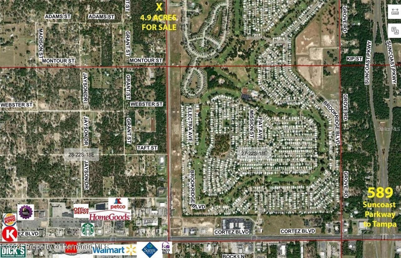 4.9 ACRES directly across from the entrance of SPRING RIDGE SUBDIVISION!! AADT (Annual Average Daily Traffic) 14,500!! Public water and sewer nearby!! This is the parcel directly north and adjoining the Marine Corps League building/property! GREAT GROWING LOCATION!! Potential commercial and/or multi-family residential for duplexes, triplexes, or quadplexes. Potential for commercial in the front and residential/multifamily in the rear. Sunshine Grove Road is a growing area very close to the schools: Pine Grove Elementary, West Hernando Middle School, and Central High School. The BUSY central hub of Hernando County (Mariner and Cortez) is just minutes away with all sorts of shopping, grocery stores, movies, restaurants and so much more!! 5 minutes to the Suncoast Parkway (589) for quick and easy access to Tampa Bay!! Everything you need is minutes away!! So much potential for this property!! Call today for more details.